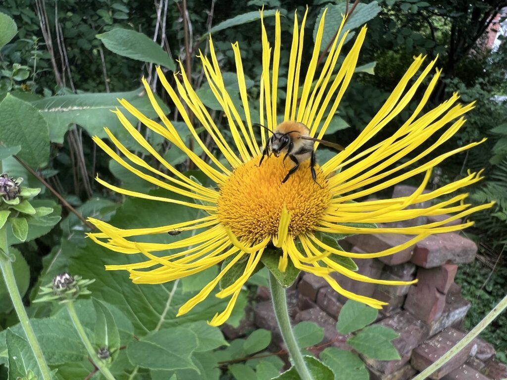 Früher habe ich im Herbst alles Trockne von meinen Stauden abgeschnitten. Da waren die Wochen ab Ende September Stress. Wie wird das Wetter? Ist es am Wochenende trocken? Kann ich in den Garten? Das ist schon lange vorbei. Meine Pflanzen danken es mir bis ins Frühjahr hinein mit einer ungewöhnlichen Vielfalt an Formen, wie dem stacheligen Samenstand des Echten Alants (Inula helenium) auf dem Foto oben .Ab Juli blüht er mannshoch und ist eine Attraktion besonders für Hummeln.