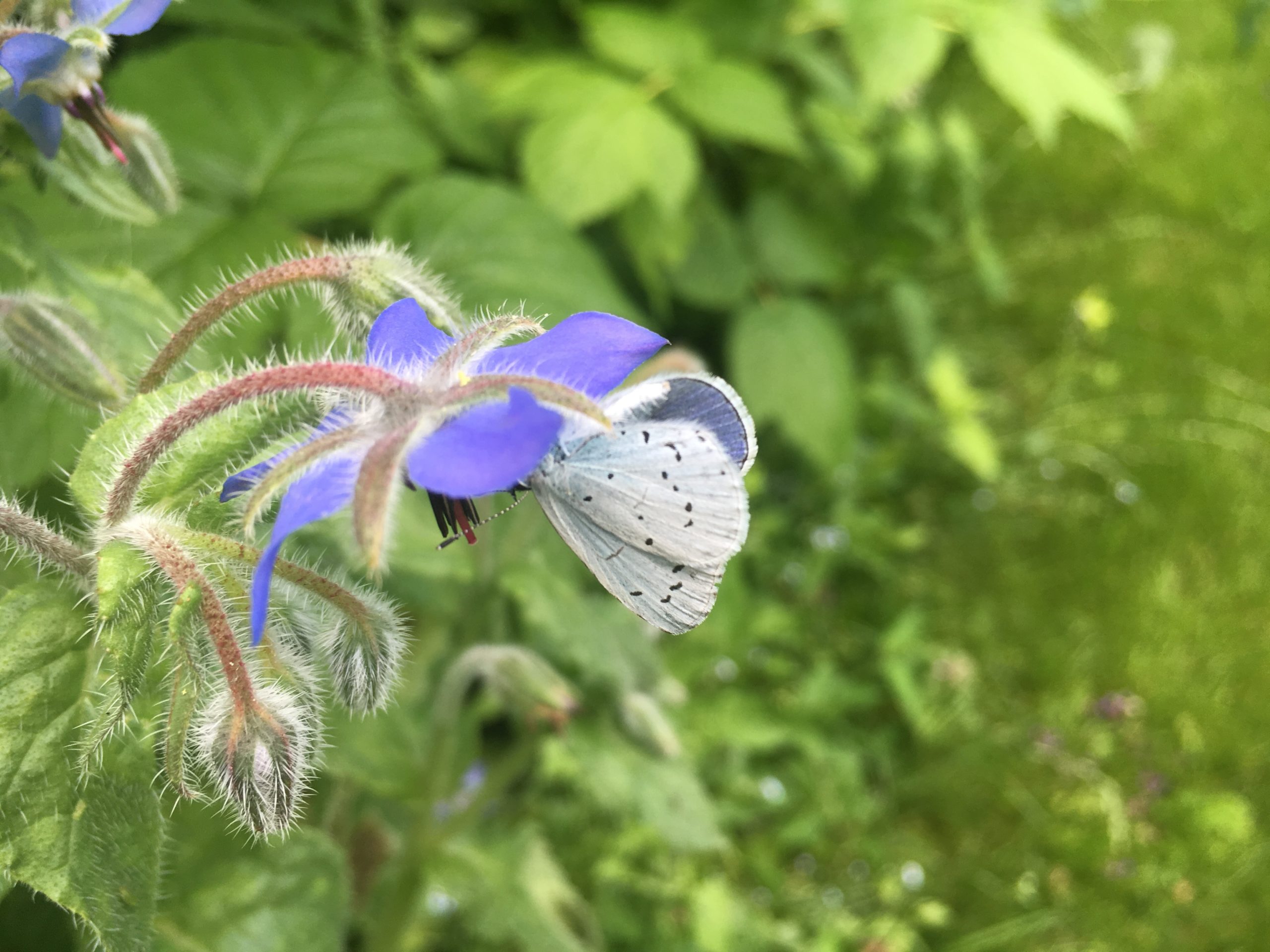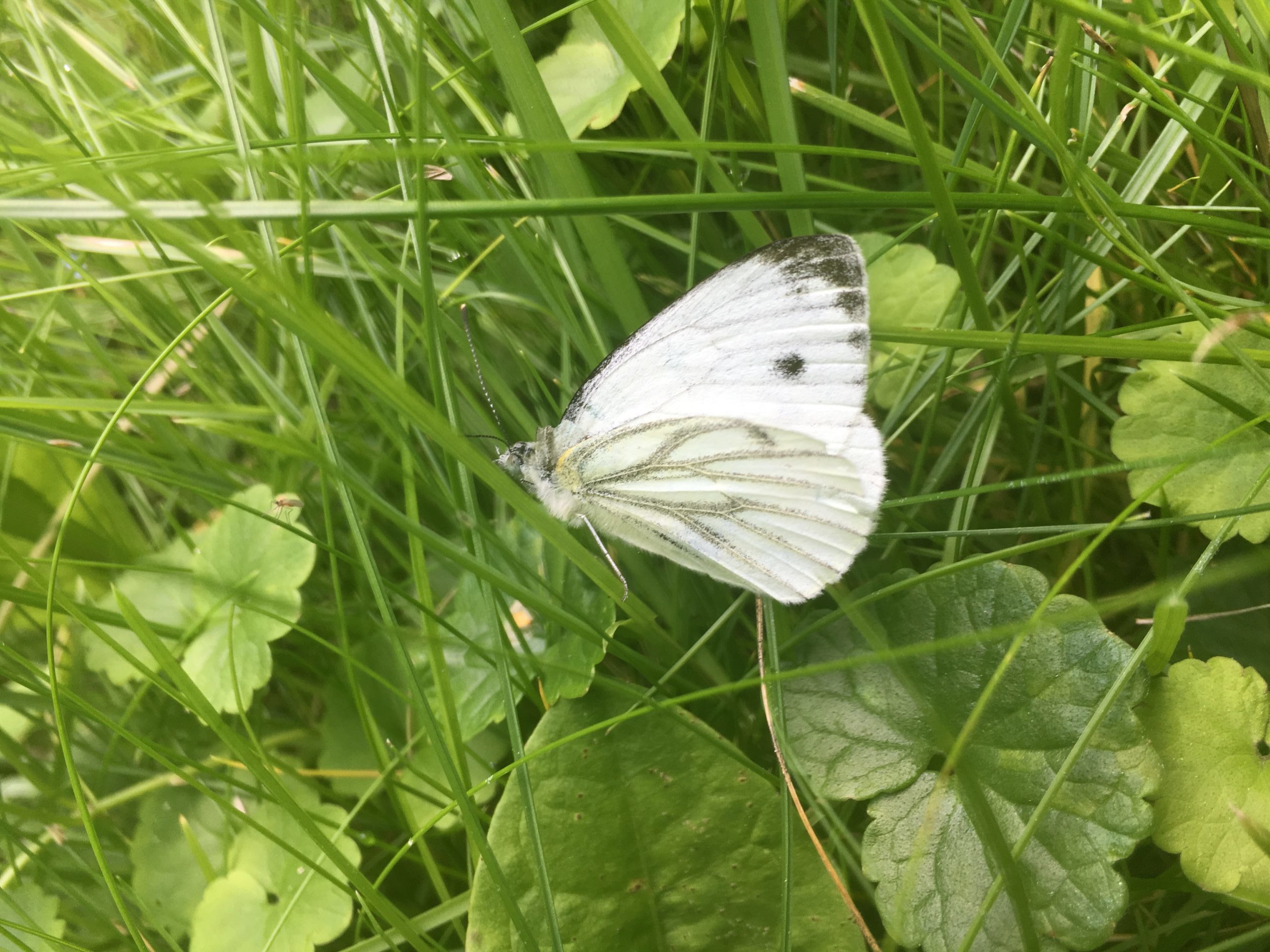 Ein englischer Rasen ist nichts für Schmetterlinge. Auch mit den meisten Gartenpflanzen können sie wenig anfangen, denn sie stehen auf heimische Wildblumen. Und so stellen sich, seit meine kleine Wiese blüht, Gäste ein, die ich in meinem Garten bislang noch nicht gesehen habe, wie der zarte blaue Faulbaum-Bläuling unten links (Celastrina argiolus) oder der Schornsteinfeger oben, der eigentlich Brauner Waldvogel heißt (Aphantopus hyperantus). Auch der kleine Kohlweisling (Foto) und der Große Kohlweißling (Pieris rapae) und (Pieris brassicae) sind wieder da. Als wir noch Gemüse anbauten, waren Kohlweißlinge so häufig, dass wir als Kinder die Raupen absammeln mussten.
