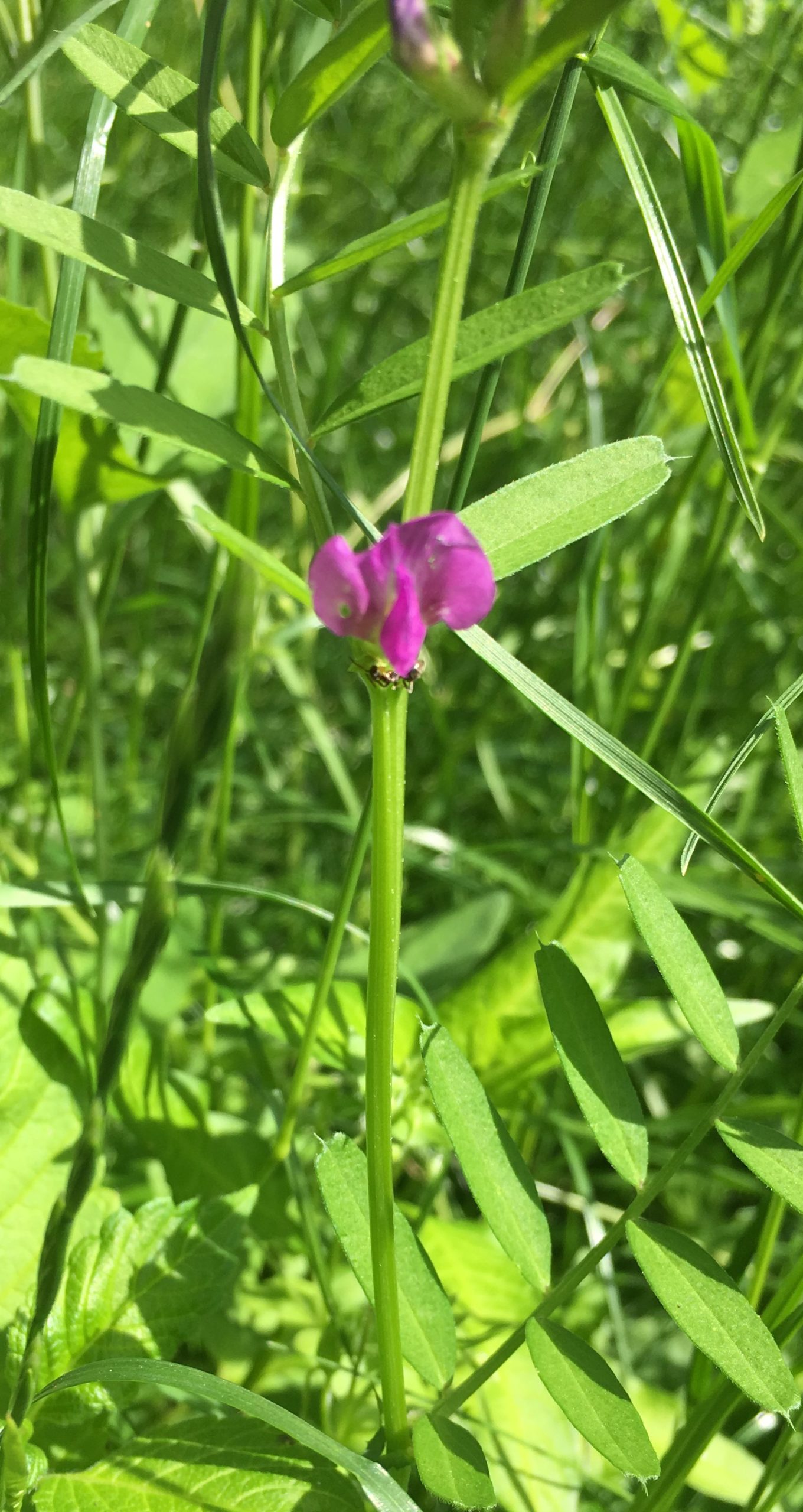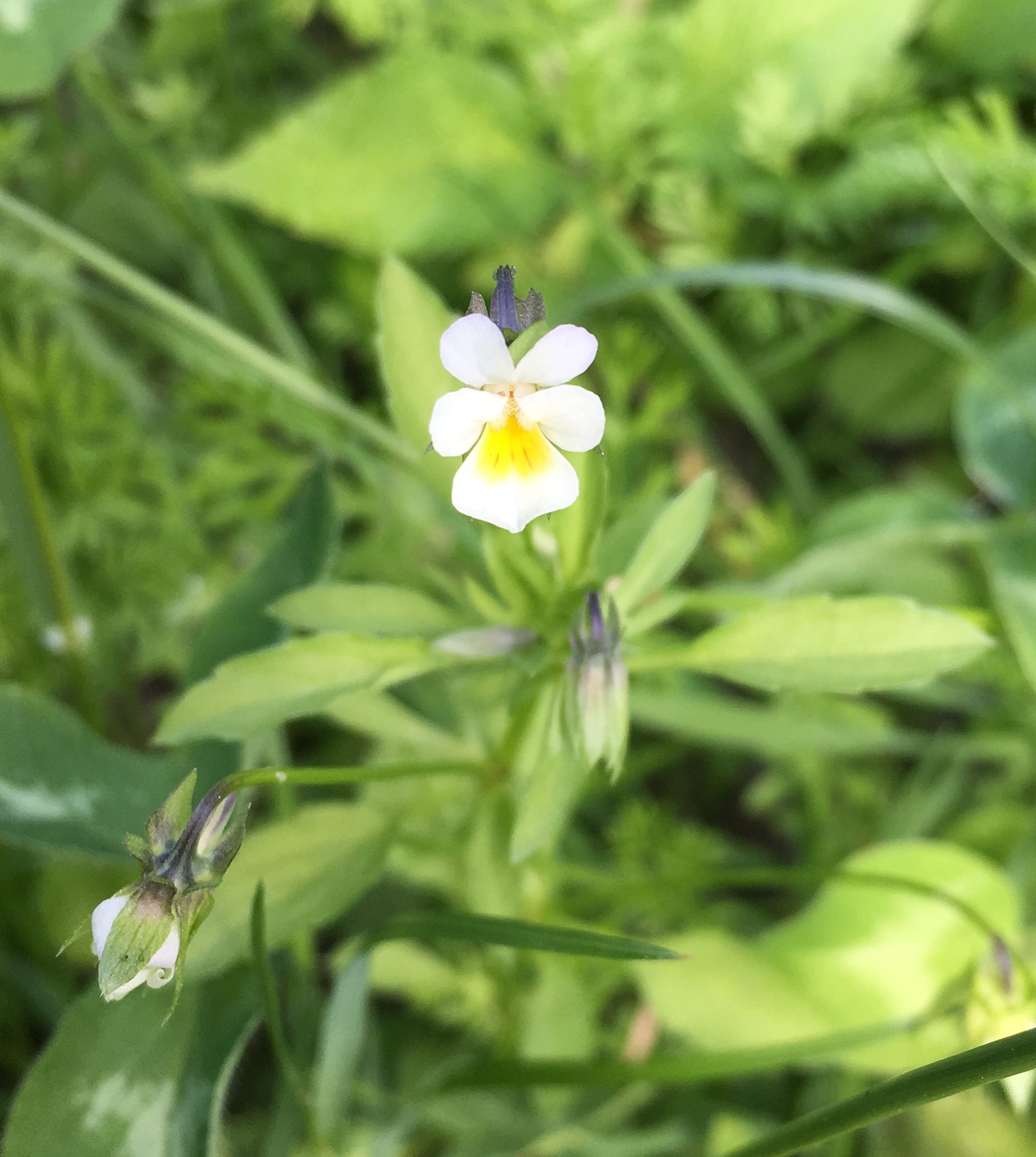Ich habe es mit Immigranten zu tun, wie die Recherche ergibt. Die Schmalblättrige Wicke (Vicia angustifolia) mit den rosa Blüten lebt seit mehr als 2000 Jahren auf unseren Äckern. Sie soll in der Hallstattzeit (800 bis 450 v. Chr.), benannt nach Gräbern in Hallstatt im Salzkammergut, aus dem Mittelmeer als Kulturfolger der Ackerbauern bei uns einwandert sein, und auch bei dem zarten weißen Acker-Stiefmütterchen (Viola arvensis) handelt es sich um eine Immigrantin aus vorchristlicher Zeit. Sie ist zudem eine Überlebenskünstlerin, die inzwischen gegen viele Herbizide resistent ist.