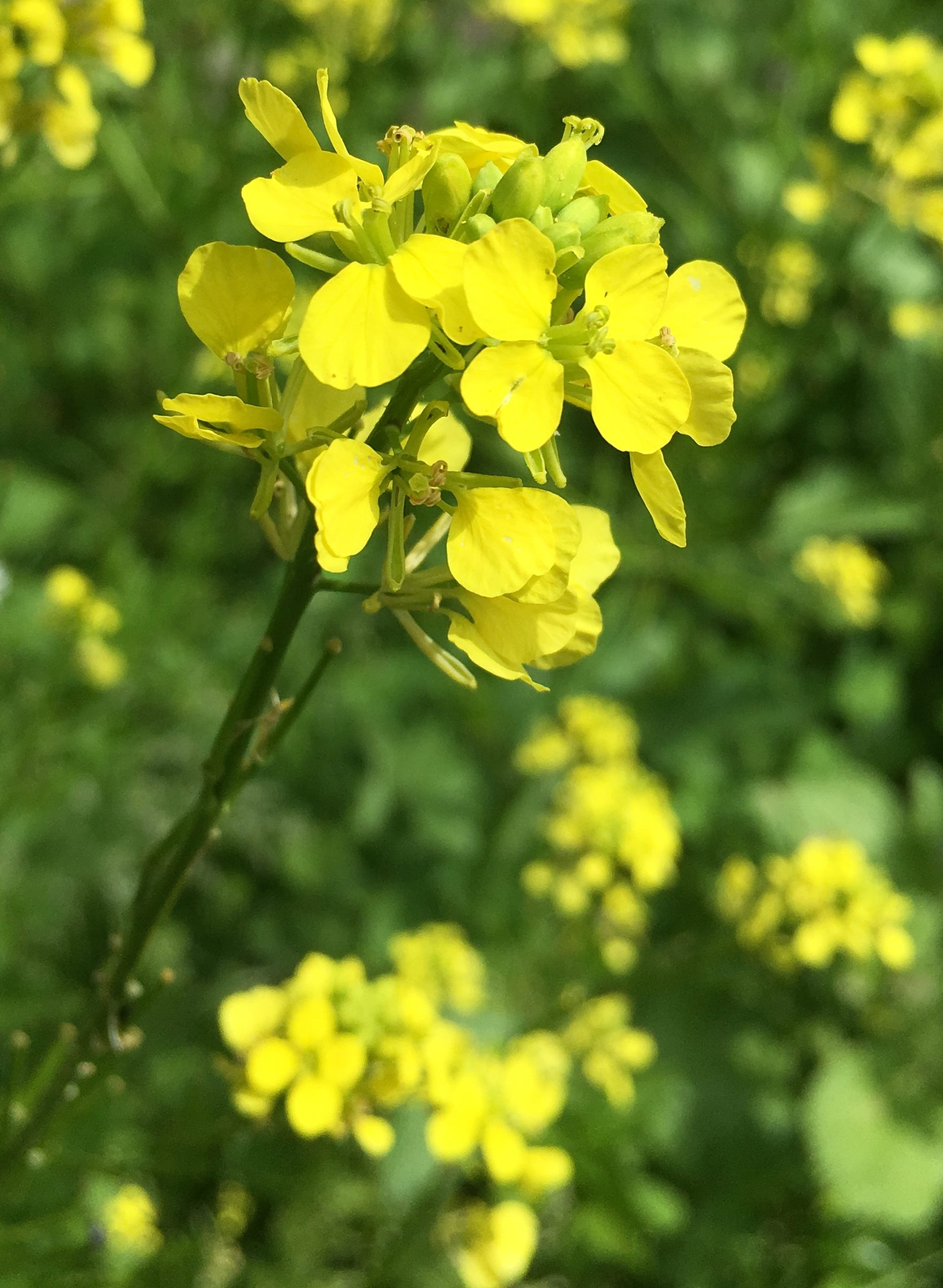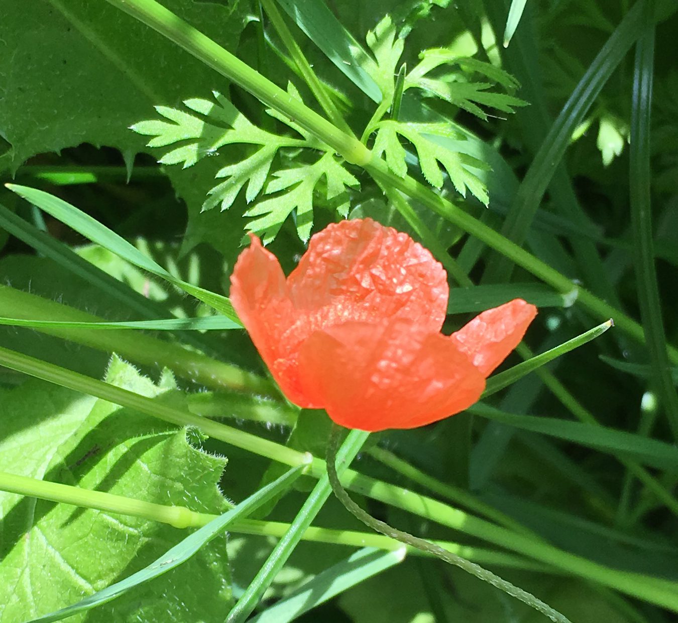 Die Natur macht mal wieder, was sie will. Jetzt im Juni beginnt meine kleine Wiese zu blühen. Mit meinem Kosmos-Naturführer kann ich die meisten Blumen bestimmen. Beim Vergleich mit den Namen des Saatgutes stellt sich heraus: Kaum etwas ist, wie es sein soll. Die gelben Kreuzblütler, die alles um 30 Zentimeter überragen, waren nicht in der Mischung. Den Senf hatte mein Vater vor zehn Jahren einmal als Bienenweide ausgesät, nun zeigt er sich wieder. Der mickerige orangefarbene Mohn entzieht sich jeder Bestimmung. Eine Wicke finde ich in der Saatgutmischung, aber nicht diese.