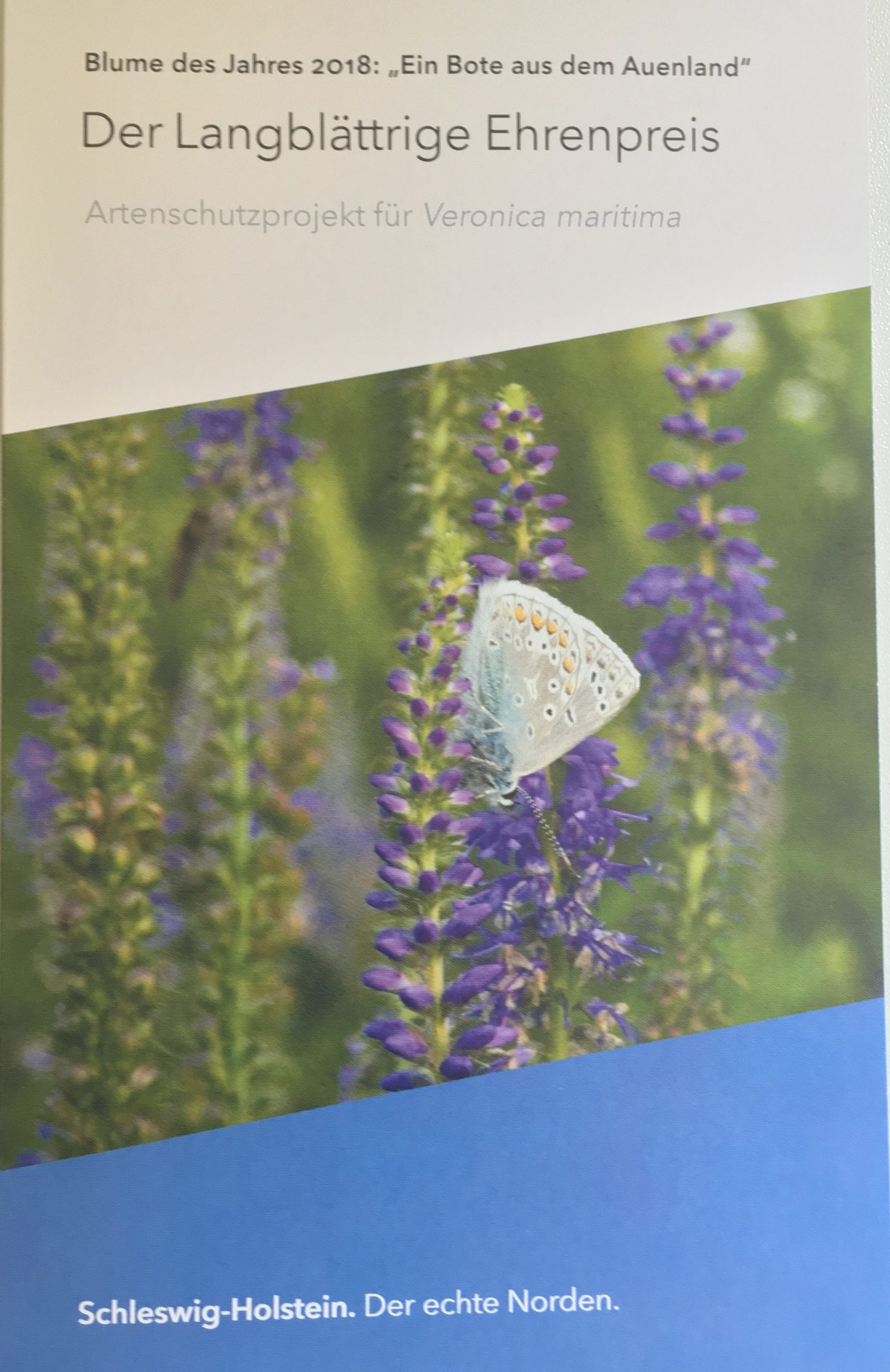 Meine Landesregierung in Schleswig-Holstein wirbt diese Tage für die Blume des Jahres 2018. Sie verschickt Boten aus dem Auenland, nämlich Samen des langblättrigen Ehrenpreises (Veronica maritima). Zu bestellen beim Landesamt für Landwirtschaft, Umwelt und ländliche Räume Schleswig-Holstein: broschueren@llur.landsh.de